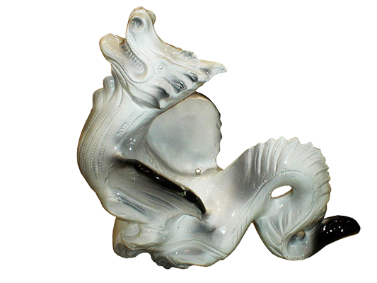 Декоративный элемент на кровлю Дракон, бело-черный глазурь, Purr-Keramic