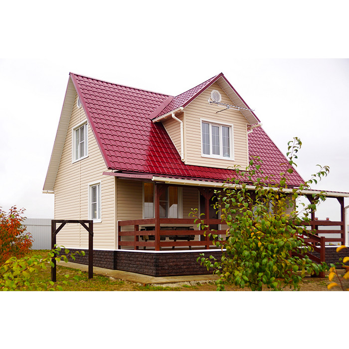 Сделали крышу на даче и довольны! Металлочерепица легкая, при этом прочная, монтировать было удобно. Цвет стойкий, без разводов, все пришло вовремя