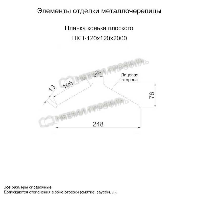 Планка конька плоского 120х120х2000 (ПЭ-01-1035-0.45)